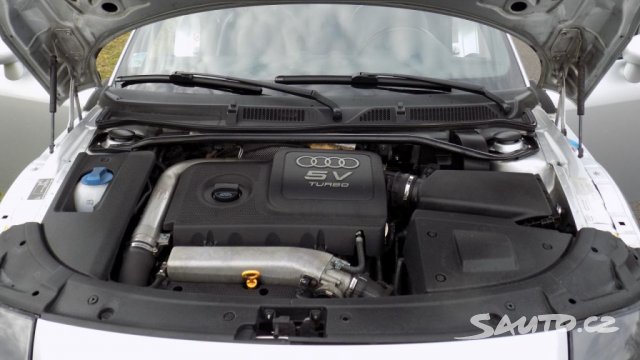 Pohonnou jednotku představuje druhý nejvýkonnější foukaný čtyřválec o objemu 1.8 litru, který odevzdává 224 koní (verze s 240 koňmi byla dostupná až v roce 2005). Tento motor snad není třeba představovat, neboť v našich končinách se jedná vpravdě o legendu. Na dostatek výkonu si tedy stěžovat nebudete, díky přítomnosti haldexu bude snad dostupná i dostatečná trakce, alespoň v přímce. Zlé jazyky tvrdí, že se TT do zatáček zrovna nehrne, spíš naopak. Na druhou stranu technika společná s Golfem IV a první Octavií (platforma PQ34) a dostupné díly zaručí, že vás aerodynamické kupé nesežere zaživa.