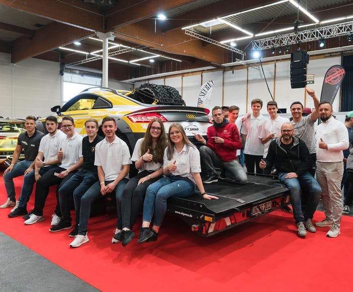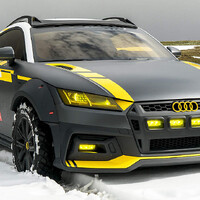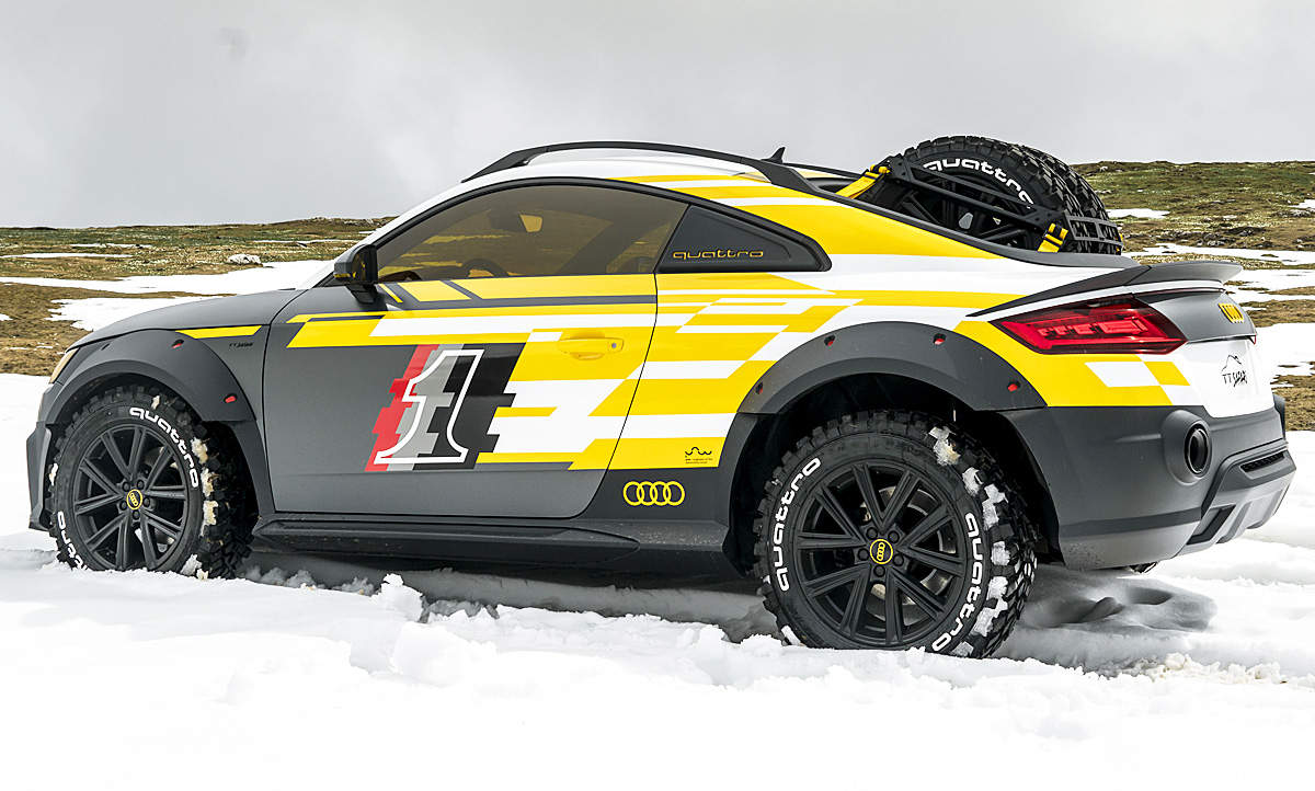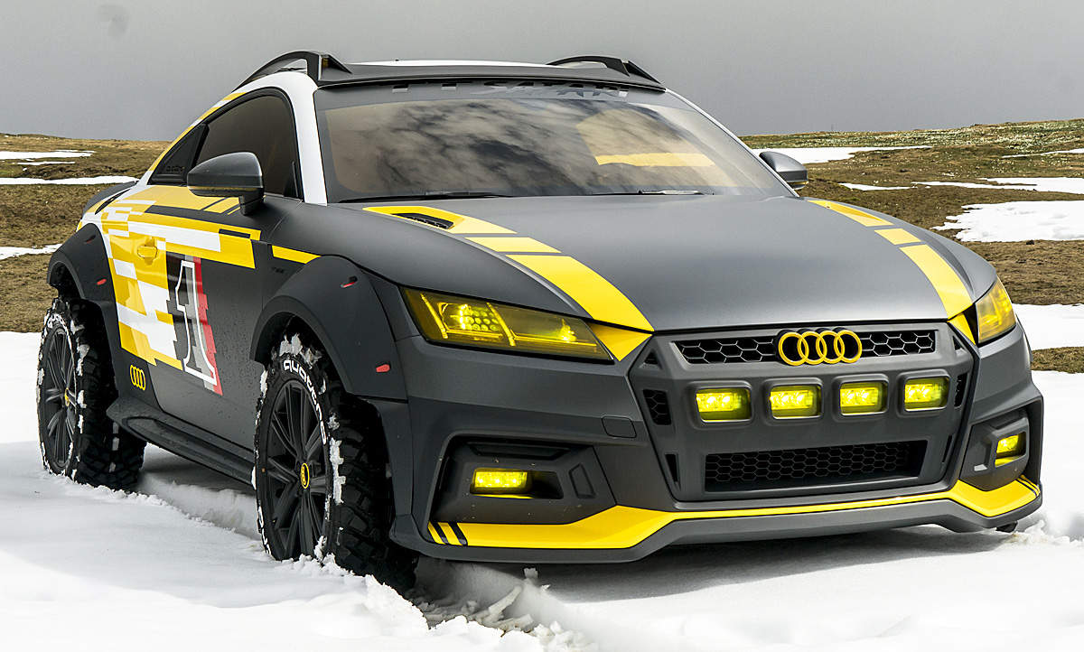 Žlutošedivý speciál mají na svědomí studenti technického učiliště při Ingolstadské továrně (na obrázku níže), kterým automobilka poskytla vybavenou dílnu a jeden produkční vůz (TTRS coupé s 2,5litrovým přeplňovaným čtyřválcem o výkonu 400 koní, automatickou sedmistupňovou převodovkou a pohonem všech kol). Jako inspirace pro provedené úpravy sloužily studentům vozy zdolávající Dakar a podobné náročné závody v nehostinných podmínkách. Jejich záměrem ale nebylo postavit nekompromisní závodní vůz pro tyto účely, ale spíše schopnou, ale stále pohodlnou stylovku.
