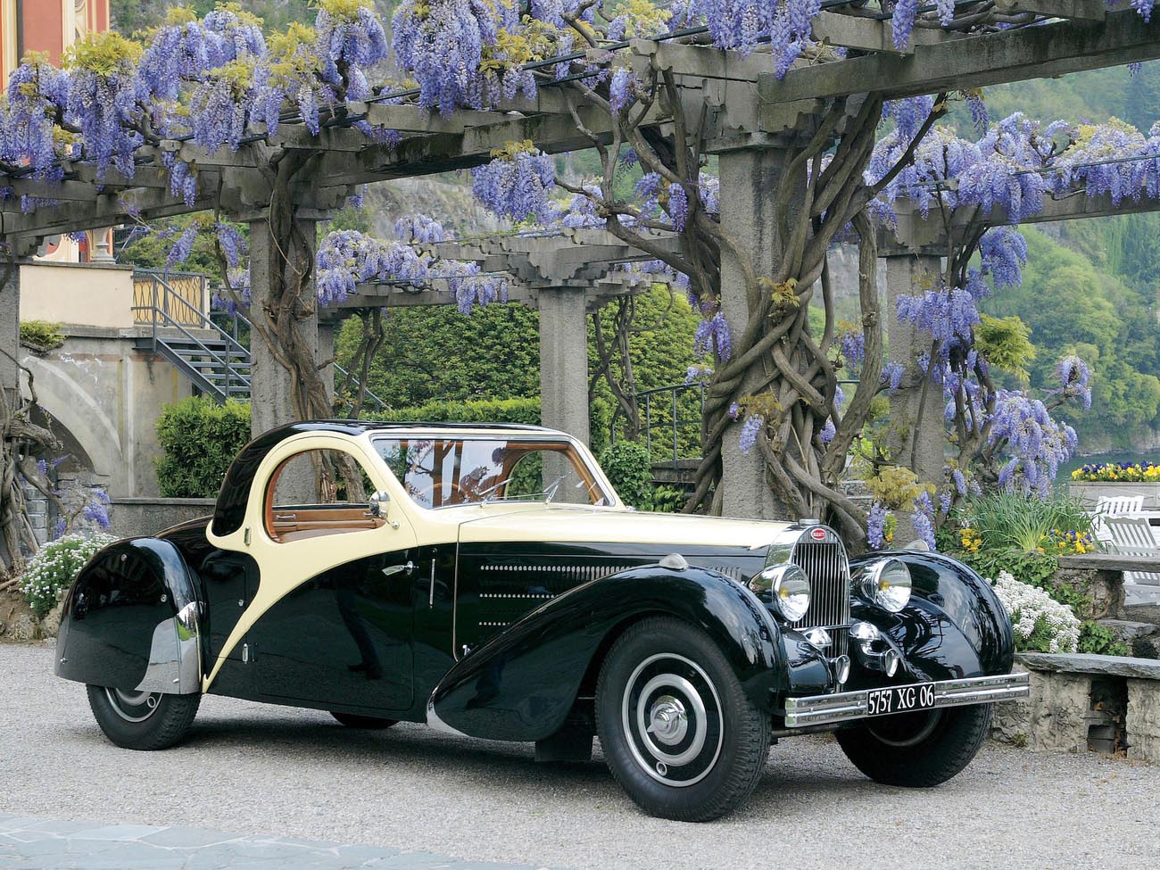 O Bugatti tu již jednou byla řeč a dokonce i o modelu 57. Ten v roce 1934 vyvinul syn zakladatele značky, Jean Bugatti. Oproti poslednímu modelu svého otce se lišil pohonem vaček pomocí ozubeného soukolí a schopností otevřít ‚žábry‘ v kapotě pomocí termostatu. Na rozvoru 3,3 metrů se rozprostírala vysoká karoserie dvoudvéřového kupé. Již první exempláře modelu 57 byly ztělesněním předválečné rozmařilosti a koncept Atlantic, následovaný produkční Altlante, dotáhl design konce třicátých let k absolutnímu vrcholu. Atlantic lze nyní obdivovat ve sbírce Ralpha Laurena a následující Atlante na čas vlastnil právě Cage. Oproti konceptu postrádá produkční verze dělené přední sklo a mohutnou centrální ploutev nad zadní nápravou. Ještě než se černo-modrý exemplář dostal do sbírky amerického herce, byl osazen kompresorem navyšujícím jeho výkon na 160 koní. Slušný výkon na veterána z třicátých let s váhou těsně pod tunu.