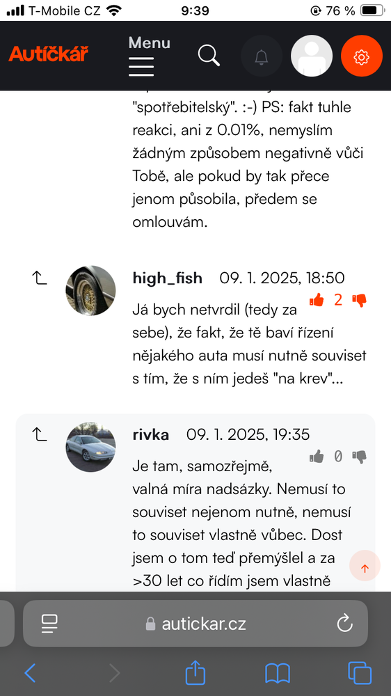 13. 1. 2025, 21:43Za me zatim ok. Vypis 6 nejnovejsich clanku mam na hlavni strance. Nad nim je sice jakasi rotujici dlazdice s 5 nejnovejsimi clanky bez ktere bych se obesel. Ale jestli tam musi byt… tak at si tam zustane. Za trest na ni nebudu vubec koukat a ani klikat. Ctu jen na mobilu. Kometare mam trochu nezvykle rozhozene. Ale jen u tech ktere maji moznost “reagovat”. Ale to muze byt i nastavenim zobrazeni na mem telefonu. Fiiha 10 let. Tesim se na dalsich 10 let kvalitniho cteni. Nepolevujte. Jdu se kouknout jestli se daji dohledat prapuvodni clanky. Jo tak daji ale vyhledavaci policko je nekde v coudu tak ze nevidim co pisu.