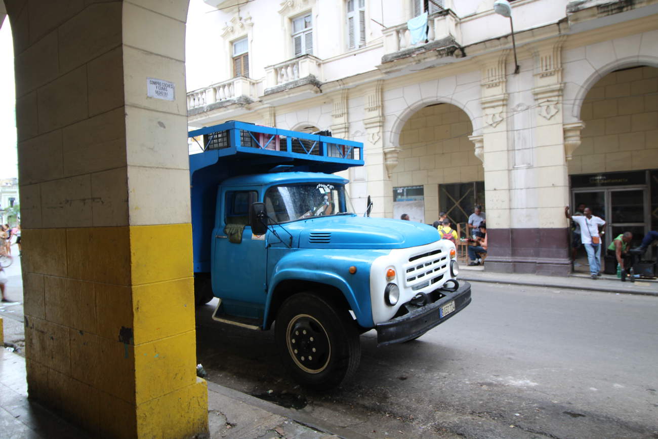 Většina těchhle aut z padesátek moc nefunguje, všechny se neustále rozbíjejí a žádný majitel se kvůli tomu nestresuje. Když si na všechny ty Chevrolety, Fordy a Cadillacy zvyknete, sem tam zaujme zbloudilé Volvo, či Mercedes ze stejné éry. Padesátková auta tvoří asi tak třetinu provozu, druhou třetinu zdatně zastupují hrdé výdobytky sovětské produkce. Lady všech velikostí a tvarů, Moskviče, které by se už v domovině dávno změnili v hromadu rezavého prášku a hlavně náklaďáky. Sovětská nákladní auta zbožňuji a tady jsem si přišel na své. Prim hrají KamAZy 4310, doplněné GAZy 53 a ZiLy 130. V armádní škole ve městě Matanzas jsem dokonce zahlédl podvozek s jedinou kabinou na straně připomínající MAZ 7910 s plošinou, jakou měl protiletecký systém S300. Jak se jim daří uživit všechna tahle nákladní monstra moc nechápu, ale na silnicích jsou v hojném počtu a především vypadají ještě lépe, než jejich osobní soudruzi. Nad jedním GAZem bych přísahal, že včera vyjel z továrny! A těch starých ruských autobusů! Nejvíce se kolem rojilo PAZů. Jak starých kulatých modelů 672 m s asfaltovou lepenkou místo prorezlé střechy, tak hranatých 3205 se všemi odstíny hnědo-oranžové, které si jen dokážete představit. Kubánci zásadně využívají autobusy do posledního milimetru krychlového a když jsem chvilku soustředěně sledoval zastávku HMD, připadal jsem si jak v klaunském čísle. Málem jsem se cítil provinilý, že jsem si k výhledu přizval jistého H. Upmanna.