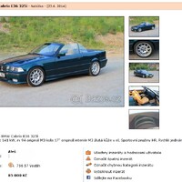 Začněme trochu nudně nebo lépe řečeno standardně – olítaným bawem. Naši oblíbenou E36 tentokrát zastupuje její dekapitovaná varianta ve vkusné barevné kombinaci. Tmavě zelená metalíza karoserie je líbezně doplněna sytě béžovým interiérem, vzhled podporují i M-nárazníky a 17" kola. Otevřená karoserie sice nepobrala příliš tuhosti a proto není ideální pro lítání skrze zatáčky na krabí způsob, ale naopak je zcela nejvhodnější co se týče přísunu charismatického zvuku řadové šestky k uchu řidičovu. Dvacet let staré vintage kabrio jest inzerováno zde.
