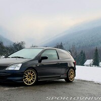 Posouváme se do vyšší cenové ligy, ale ještě stále zůstáváme u pohonu předních kol. Honda Civic sedmé generace v ostré variantě Type-R. Tohle auto klame tělem. Zpovzdálí vypadá jako klidný rodinný vůz. Zvláštně zvýšená stavba karoserie a lehce vystrašený kukuč o sportovních schopnostech nic nenaznačují. Stačí však pohled dovnitř a okamžitě poznáte, s kým máte tu čest. Když vklouznete do skvěle tvarovaných sportovních sedaček a nastartujete atmosférický dvoulitr, rychle zapudíte myšlenky na rodinný výlet. Tohle není nic pro slabé povahy. Dvoulitr má kulatých 200 koní a to nejlepší ze sebe vydává daleko za hranicí možností běžných aut. Přesně tak, jak se sluší a patří na motor, který hrdě nese jméno Honda. Je ostrý, miluje otáčky a většinu řidičů nikdy neomrzí. Ale co když patříte do zlomku lidí, kterým je takový výkon málo? Inzerovaný kousek názorně ukazuje, kam až lze zajít. Seznam provedených úprav by vydal na samostatný článek, je toho opravdu požehnaně. Všechno je uzpůsobeno maximální funkčnosti a co nejlepšímu času na okruhu. Pokud je vaším cílem být jedním z nejrychlejší účastníků trackdayů, pak je tohle správná volba. Moc rychlejších aut u nás nepotkáte.
