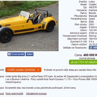 Ten, kdo má rád ryzí a ničím neředěnou radost z jízdy na čtyřech kolech a někdy v životě okusil Caterham, to má děsivě těžké. Dát milion nebo klidně i víc za jednoúčelovou záležitost je pouze pro bohaté blázny. Pokud jste blázen, ale chudý (nebo bohatý jen trošku), máte smůlu. Koupit Cata z druhé ruky totiž nedává příliš racionálního smyslu, protože ceny, které si majitelé za těch pár splašených trubek žádají, vás donutí vypustit z úst jen záplavu nepublikovatelných slov a následně se zamyslet, kdo si to za ty peníze vůbec koupí. V severozápadním cípu naší republiky se ale možná objevilo řešení. Značka Westfield rozhodně neoplývá onou nehmatatelnou gloriolou nejlepšího výrobce moderního následníka Lotusu 7 jako Caterham, na druhou stranu se odkazem Colina Chapmana zabývá už nějaký ten pátek a její výrobky rozhodně nelze označit za podřadné. Vlastně to byl právě Westfield, který do šasi sedmičky poprvé přimontoval plně nezávislou zadní nápravu. Takže mít ne zas tak starého a rozhodně ne slabého Westfielda za cenu nejlevnějších Caterhamů nezní jako špatná nabídka. Otázkou jen zůstává, jak celé auto vlastně funguje. Je nutno mít na paměti, že jde o kit car, jehož kvalitu nelze posoudit jinak než zhlédnutím konkrétního kusu. Z fotek však vypadá docela úhledně. Převrtaný fordí dvoulitr Pinto krmený dvěma karburátory Weber prý dává 167 koní, což je na lehoučký věchýtek víc než dost. Inzerát boužel mlčí o komponentech podvozku nebo brzdách. Za obhlédnutí by ale stál, co říkáte?