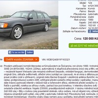 16. 10. 2015, 17:24Tu W124 mohu jen doporučit,velice pečlivý majitel,který si po dobu 2 let co jí vlastní na ní dal hodně záležet a staral se o ní s patřičnou úctou . Měl jsem možnost řídit jí a několikrát se svést :)