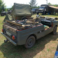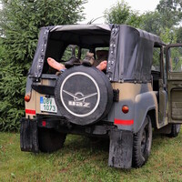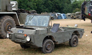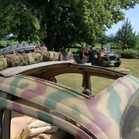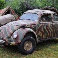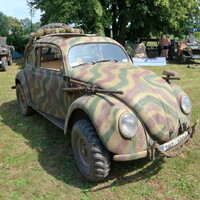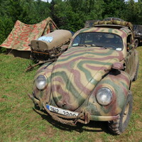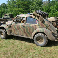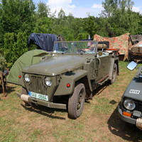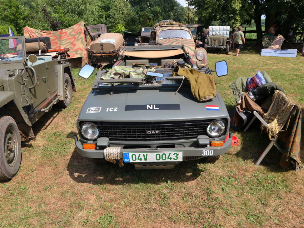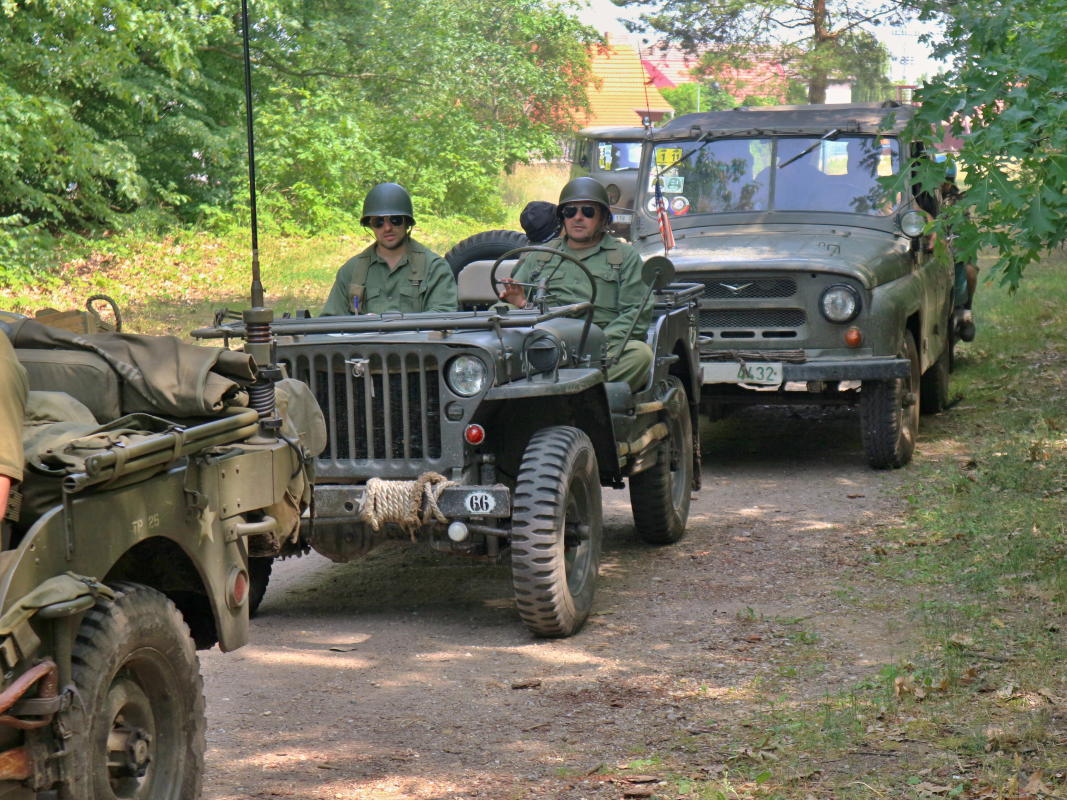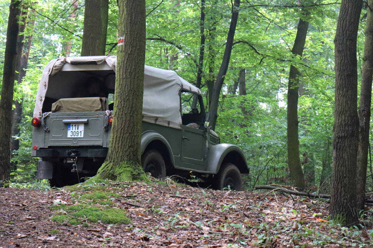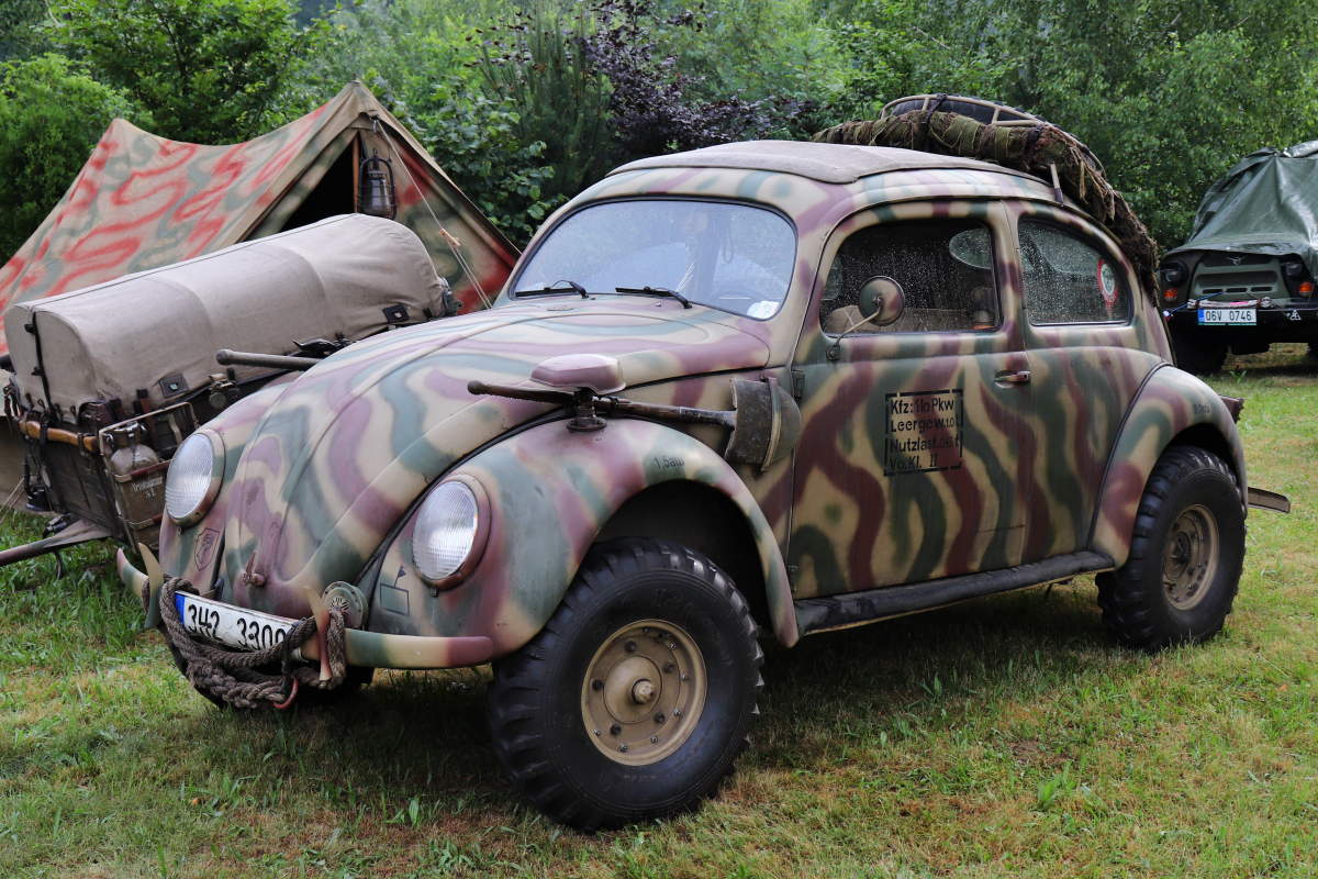 Na rozlehlé ploše vedle sebe stojí sovětské GAZy, UAZy, sem tam rumunské ARO a především záplava Jeepů Willis. Ikonické otevřené karoserie amerických válečných ořů jsou zastoupeny snad ve všech variantách a velikostech. Na travnatém parkovišti pak stojí i pár nevšedních zajímavostí. Na první pohled zaujme 'bojový brouk' a vůbec nevadí, že jde o klon postavený nadšenci. Úzké blatníky, zvýšený postoj a pohon zadní nápravy evokují válečné provedení Type 82E, které sloužilo důstojníkům Wehrmachtu od rychlých výpadů Afrika Corps, přes vojenské přehlídky v Berlíně až po strastiplnou cestu z Minsku do Smolenska.