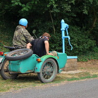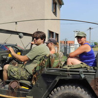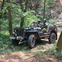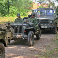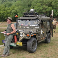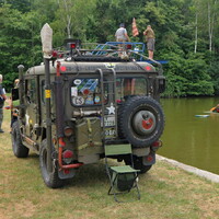V kontextu druhoválečné techniky pak působil HMMWV (lidově řečený Humwee), který si klestil cestu davem provádějícím ranní hygienu, přímo obludně obrovský. Jen co jsem ulovil šálek černého čaje, na lidech kolem začalo přibývat oblečení a na startu orientačního závodu se začaly seřazovat první vozy. Osádka Willise v dobových uniformách s plechovými helmami a nezbytnými aviatorkami na nose živě rozprávěla s řidičem UAZu 469 ve zbarvení sovětské vojenské policie a v pozadí hřměla startovaná 'Dočka'. Vojenská vozidla válečná, poválečná, americká, německá a sovětská, všechny měly společný rys a to nadšenou posádku.