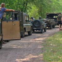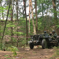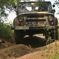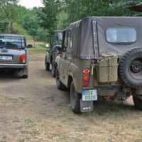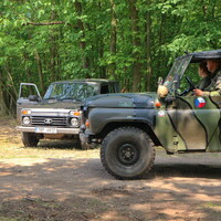 Minul jsem stanoviště druhé disciplíny a spěchal ke třetí. Ta totiž obsahovala slibnou kombinaci střelby a terénní jízdy, kterou jsem si nechtěl nechat ujít. Jaké bylo zklamání, když střelba na plastové vojáčky probíhala z vodních zbraní. Nejvíce se to dotklo osádky Jeepu M151, která měla za zadními sedaly osazený těžký kulomet a hlasitě se dožadovala povolení palubních zbraní. Vloudil jsem se na korbu Jeepu MB a užíval si, jak se malý go-devil pomocí mnoha ozubených koleček dere přes rozježděnou lesní cestu. I když mí průvodci nebyli ve střelbě příliš úspěšní, jízdní část jim šla skvěle a já jim tímto děkuji, že mě vzali s sebou a nechali okusit legendární vůz na vlastní zadek. Cesta přes dva orientační body se samokontrolou pak byla klidnou vyjížďkou ve stínu lesa. Až když jsme se vynořili do polí a následovali UAZ, udeřilo do nás se vší silou slunce a vzhledem k tomu, že jsem s odolným teréňákem přede mnou nedokázal na rozbité cestě držet krok, odpojil jsem se od konvoje a vrátil se na ranč, ze kterého jsme vyrazili.