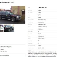 31. 1. 2017, 10:18Měl jsem možnost se s ním potkat osobně. On i ten majitel je, řekněme dost svéráznej. :-) Má nějakej ranch někde u Klatov. Kromě toho Suburbana míval ještě Trailblazera a obě ty auta vypadaly, že s nima nejen jezdí na ten ranch, ale že část tohoto ranche si vozí i uvnitř. :-) Dobrovolně by se ti dovnitř těch jeho aut nechtělo. :-D
