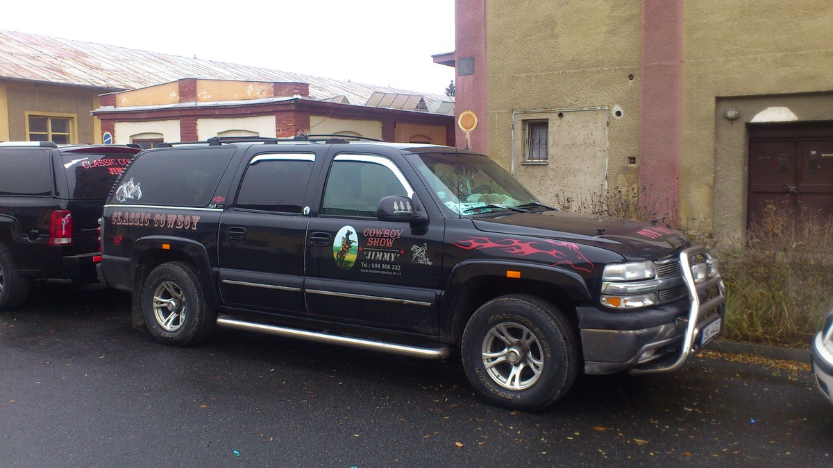 ). Je to dvojče Cadillacu Escalade a GMC Yukon. Liší se vlastně od sebe jen designem karoserie a designovýma drobnostma v interiéru, výbava je u lepších verzí identická a tedy maximální. Není to žádnej závodník, naopak člověka vyloženě nutí k poklidný, plavný jízdě, ale na druhou stranu, v tomhle autě člověk přejede zeměkouli, aniž by se cítil unaveně. Kromě toho, že to utáhne na kouli nesmysly a gauč tam člověk dá, aniž by musel sklápět přední sedačku, tak v tom čas od času i kempujeme. Zadní sedačky se dají sklopit do roviny, pátý dveře mají výklopný i jen sklo, na stropě je tovární DVD přehrávač s úžasným ozvučením od Bose, takže se dá v pohodě vegetovat. Na srazy US cars v Maďarsku to bylo perfektní, na Lipně jakbysmet. :-) Je to neuvěřitelnej pracant a přitom výbavou se mu může pořád rovnat málokterý dnešní auto. Ten náš šuplík už je 13 let starej, najeto má 383.000 km a pořád bez problému jezdí a nic moc nepotřebuje. Na LPG mimo město se s tím dá jezdit při normální jízdě za v přepočtu 8L, takže proč si pak kupovat Octávku? Jasně, je to trochu velký (s rámem a koulí má ten náš cca 5,3m délky a 2,2 šířky) a parkování na sídlišti není tak snadný, ale když si člověk zvykne, tak není problém. Počítáme s tím, že až přijde čas na výměnu, tak ho nahradí buď novější generace nebo jeho dvojče Escalade, kterej je tu zmíněnej.Tyhle monstra nejsou pro každýho a popravdě, myslím, že tady osloví málokoho. Asi to bude ve velký míře i tím, že sem chodí mladí kluci, kdežto tohle jsou auta, do kterých asi přecijen musí člověk dorůst. Ale zatracovat je, je obrovská chyba. Fakt mají obrovský kouzlo. Když přesednu z Corvetty do Tahoe, tak mám pocit, že se svět najednou ztišil a zjemnil. Je to obrovskej kulturní šok.
