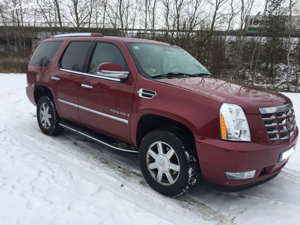 Líbil se vám Lincoln, ale na hromadné vyjížďky na bingo jste příliš mladí? Nemá pro vás Evropa dostatečně robustní konstrukce a motory? Zdá se vám Suburban příliš masový? Cinkáte zlatými řetězy a drhnete rovným kšiltem o nízko zavěšenou stropnici? Nezoufejte, je tu ještě Escalade. Právě Cadillac z přelomu století zažehl boom luxusních SUV a v rozličných videoklipech nadějných muzikantů překonávajících touretteův syndrom si získal obdiv mladých mužů. Pokud však odložíte image vlhkého snu mnoha ozbrojených afroameričanů, pořád vám zůstane pořádná porce auta. V pořadí již třetí generace z roku 2007 nabízí ve standartní výbavě tří-zónovou klimatizaci a jemnou kůži kam až oko dohlédne. Pryč jsou krabicoidní tvary a obecní popelnici připomínající materiály předchůdců. Američané se poučili a na posádku dýchne nefalšovaný luxus i příkladné zpracování. Snad jen display ve střední konzole prozradí skutečný věk vozu. Zajímavý efekt má největší Caddy na své okolí. V Evropě jsou tyto vozy ještě pořád raritou a tak nikoho nenapadne, že nadčasové ostré tvary již mají za sebou deset let. Naštěstí stejně jako vyvoleným ze spojených států, historie ještě ani Cadillacu nesetřela bahno z lakýrek a tak se kdesi v útrobách nabubřelého továrníka tísní svaly venkovského dříče. Escalade ráno odveze koně, v poledne spolkne novou převodovku pro traktor, odpoledne udělá parádu před obchodními partnery a pozdě večer odveze svého pána v nerušeném klidu a pohodlí několik set kilometrů domů. Skutečně způsob, jakým tento gigant polyká kilometry, je neuvěřitelný. Spolehlivost osmiválců od GM a bezproblémový provoz na LPG jsou slušné argumenty, proč zavrhnout problémová prémiová SUV z Evropy a dopřát si trochu toho ‚bling‘.