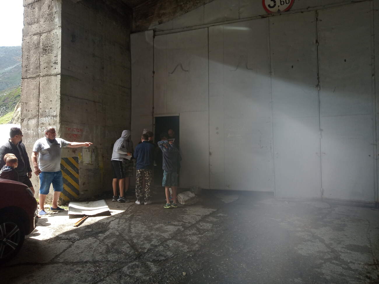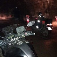 K tunelu jsme dorazili společně s duem místních motorkářů, kteří nechávají projít pěší turisty a pak tlačí svoje motorky skrz úzká vrátka dovnitř. Nevěřícně sledujeme jejich počínání, když v tom se najednou obrací na nás a ptají se, jestli chceme pomoct? No, než jsem se nadál, už se za jejich asistence cpu dovnitř taky. V tunelu je (nečekaně) absolutní tma a voda z tajícího sněhu teče všude, po zemi, po stěnách, kape ze stropu, v podstatě se dá říct, že tam prší. Do toho se tam motají lidi, startujeme a pomalu se vydáváme kupředu do tmy. Na druhé straně je to jednodušší, vyjet se dá „pohodlně“ bez pomoci. Konečně to, kvůli čemu jsme tady!