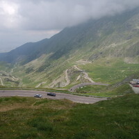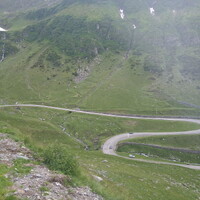 Dnes nás čeká už jen kousek po dálnici do městečka Sebes, kde zastavujeme k dotankovaní a na oběd. Vzhledem k tomu, jak dopadl předchozí den, nenechávám nic náhodě a dávám si steak. Poté se už konečně dostáváme k tomu, proč tady jsme. Najíždíme na Transalpinu – 150 km toho nejfajnovějšího asfaltu, klikatícího se nádhernou přírodou. Zábava začíná! Nechávám se tím naprosto pohltit a užívám si to a nejspíš nejen já. Kdybych věděl, že o tom budu psát článek, tak bych občas zastavil a pořídil nějakou fotku, z téhle cesty jich mám úplný minimum, asi budu muset nějakou ukrást z internetu. Snad to něco vypovídá o tom, jak skvěle jsem se bavil. Stoupáme až k nejvyššímu bodu cesty – Urdele (2145 m. n. m.), kde se dokonce nachází ještě zbytky sněhu. Zastavujeme na pár fotek a malou koulovačku. Původně jsme měli v plánu se otočit a zamířit zpátky, protože už teď si děláme zajížďku. Pak si všímáme jak vedlejší kopec, kam cesta pokračuje, právě zahalil mrak. No nic, když už jsme tady, jedeme se „projet v mracích“. Je to skvělý, teda až na tu část, kdy se táhnu za Volvem, jehož opatrnej jízdní styl naprosto respektuju, i přes parádní asfalt to ale není zrovna snadná cesta. Úzká, pletená jak vánočka, místy s kamením ve vozovce, ale v sérii vraceček musím i jedničku tahat přes spojku, moje motorka prostě fyzicky neumí jet takhle pomalu. Navzdory tempu si na vhodnou chvíli k předjetí musím počkat.
