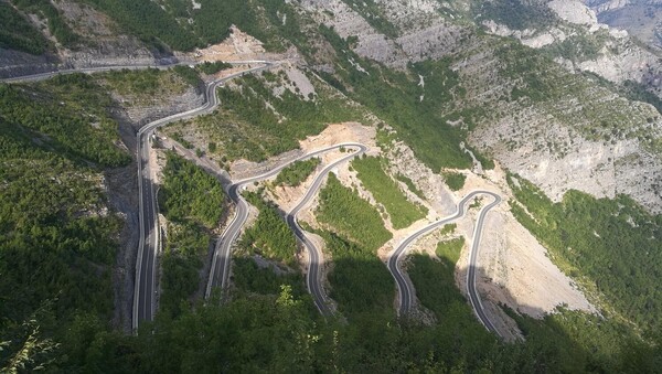 Asfaltka??? Já tam kdysi jel na kole (ve směru od Plavského jezera ke Skadaru) a tehdy byla silnice od Černohorské hranice až po dědinku Rrapsh-Starja (tedy včetně těch serpentin na fotce, ty jsem si dával v albánském teplíčku nahoru, na to se těžko zapomíná) šotolinová. A tím mám na mysli albánskou šotolinu; Land Cruiser by bylo docela přiměřený auto. Až samotný sjezd k Skadarskému jezeru byl asfaltový, jestli si to dobře vybavuji.