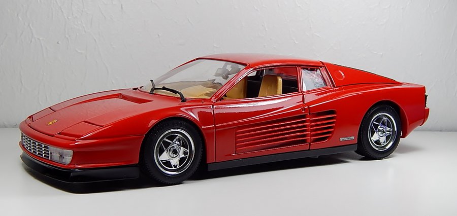 Ale ani o supersporty jsem ochuzen nebyl. Sice v o něco menší, ale zato třírozměrné podobě. Nedlouho Sametové revoluci v mé garáži dítka tehdy sotva školou povinného přibyla po plastovém, z polska přivezeném Ferrarii 512 BB i ještě větší a ještě červenější Testarossa od tehdy uctívaného Bburaga, v královském měřítku 1:18.