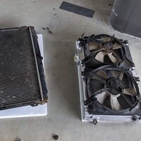 Ne, nejde. Pokud chcete blbý kus plastu, kupte si k němu chladič! Vzhledem k tomu, že chladič v MX-5 už si zažil svoje, tak byl vyměněn. Nabídce na celohliníkový chladič za nízké jednotky tisíc se říká ne velice těžko. A tak jsem zase udělal vylepšení. Sakra. Takhle to brzo skončí tak, že tam prostě jen nacpu kompresor, protože všechno ostatní už bude hotový. A pak umřu.