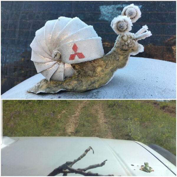 No a když jsem skládal manželky auto, tak nejlepší kapota jaká byla k dispozici byla provrtana na fanfáry :-/ Docházel mi drát do svarecky, tak jsem raději vyvadil hranu a díry nechal. Nebyl čas:-/ Tak si do jedné z děr žena přivrutila velmi realistický vypadající gumovou žábu. Všichni celnic/policajti a i lidí se vždy jdou presvedcit, jestli je živá :-D