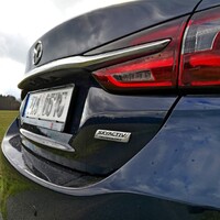 Pocity z vnitřku jsou ale veskrze pozitivní. Perfektní ergonomie zůstala. Jak moc si dávali v Mazdě záležet poznáte na detailech. Tak třeba sedadla. Jejich látkové čalounění je na omak jemné, nepůsobí jako rašple na bradavice (zdravím do Boleslavi) a když se usadíte, poznáte, že v Hirošimě nešetřili na progresivně se deformujícím bohatém polstrování. Krom pár výlisků ve dveřích a na neviditlených místech palubní desky, je vše na omak příjemné a visuálně precizní. Třeba nad laděním chodu otočných ovladačů klimatizace někdo strávil opravdu spoustu času. Anebo ona horizontální linka palubní desky navazující plynule na dveřní výplně – tento vkusný detail už jsem si také odvykl vídat… A v rámci interiéru nesmím zapomenout zmínit, že někoho konečně napadlo k úchytům isofix přidat i plastové naváděcí tunely, takže připevnění dětské autosedačky už nemusí předcházet gynekologické vyšetření skuliny mezi sedákem a opěradlem zadní sedačky. Negativem je zmenšené místo pro nohy na zadních sedadlech, které ubraly právě rozšafněji řešená sedadla přední. Avšak pořád se bavíme o téměř pětimetrovém sedanu, takže strádat nebudete.