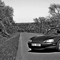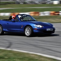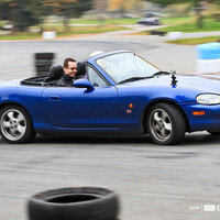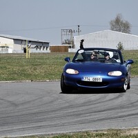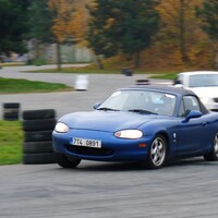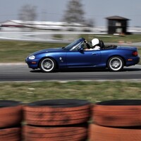 Escort nakonec odešel do dobrých rukou fandy ze Zlína a já se rozhodoval, co dál. Cílem byl zadní náhon a čitelnost na limitu, abych se ve své první zadokolce nezrakvil hned ze startu. Vy už určitě víte, že řešením byla MX-5. Ve výroční edici 10th anniversary, v blankytně modré Blue Mica, s šestikvaltem, samosvorem, podvozkem Bilstein a alcantarovými sedadly. Jak se ukázalo, byla to ta nejlepší věc, kterou jsem tehdy mohl udělat. S MX-5 jsem prožil 3 úžasná léta plná intenzivního ježdění a doteď mi je po ní smutno. Stačilo jí nadělit štelovák od BC Racing, solidní destičky a lepivější gumy a jezdila jako královna. Skvěle sloužila na mnoha trackdays, poprvé jsem v ní navštívil velký okruh, relativně úspěšně se zúčastnil několika závodů Miata Cupu, týral Imprezy a Eva na autoslalomu, Hondy Type-R při paralelních jízdách na Czechringu a motorkáře na okreskách. Vždycky skvěle fungovala, skoro nic za to nechtěla a všechny kilometry jsem se v ní strašně bavil. Vlahé letní noci s větrem ve vlasech na okreskách mi způsobily závislost na roadsteru a krom toho ze mě za ty 3 roky udělala mnohem lepšího řidiče… sice jsem pořád strašné poleno, ale pokrok oproti období před Mazdou byl propastný… Zmámen touhou po vyšších výkonech jsem se v ní ještě stihl oženit a předloni v létě poslat k novému majiteli Adamovi. Ten jí poskytuje tolik péče, že pravděpodobně neudržím sentimentální slzu dojetí, až jí o víkendu znovu spatřím jako exponát na Legendách… Celé dva roky mi někde v hloubi hlavy zní "Tu jsi prodávat neměl ty debile…"