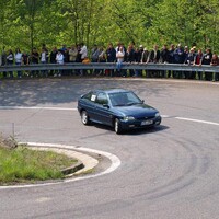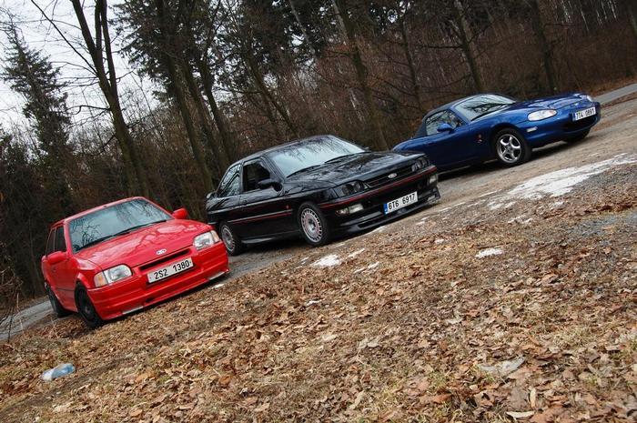 No, neuběhl ani rok a já si ze stabilnějšího, tou dobou již celoročního příjmu, konečně pořídil první opravdové auto a ne jen rezavou náhražku. Tím autem byl Ford Escort mk.VII, což zní jako další smutný příběh, naštěstí ono vozidlo v petrolejové modři neslo za jménem přídomek RS2000, takže jeho vlastnictví bylo docela snesitelné. Obzvlášť, když se jednalo o kus, který nějakým zázrakem ještě nezapočal svou transformaci na zrzavý prášek. 150 koní neúnavného motoru, relativně malé náklony (sic humpoláckého) podvozku a vynikající posez za volantem díky sportovním sedadlům od Recara způsobily, že lítání po okreskách začalo být tak nějak lepší a rychlejší. Bylo příjemné mít slušný výkon k předjíždění a nedokázal jsem slovy vyjádřit, jak moc mě těšilo, že nebyo třeba být zakouslý do volantu v každé ostřeji líznuté zatáčce, aby mě auto nevyhodilo z plochého sedadla oknem ven, jak jsem byl zvyklý v Jaruně… S Escortem jsem nabyl pocitu sportovnosti. Začal jsem se učit meziplyny, užívat si řazení a hluboký baryton čtyřválce a v neposlední řadě jsem také začal nabývat pocitu, že na okreskách už se vlastně nedá jezdit o moc rychleji, než jsem jezdil.