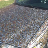 Kolik asi váží sedmdesát tisíc mincí? Jedna česká koruna má hmotnost 3,6 gramu. Korunová výzdoba by tedy autu přidala nějakých 250 kilo navíc, to jsou tři průměrní pasažéři, nic zásadního.