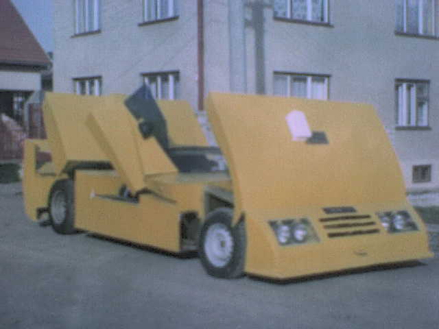 Detaily inzerátu zanechávají v hlavě laika poněkud zmatečný dojem. Povězte mi, která dvanáctsettrojka měla motor o výkonu přes 200 koní? A co je kruci čtyřválec s osmi hlavami? Neméně matoucí je pro mě i informace, že majitel je ochoten postavit kopii inzerovaného vozu za 33 tisíc Euro, přičemž udávaná prodejní cena originálu je 140 tisíc korun. Tajuplnost nabídky korunují fotografie pořízené pravděpodobně z jakéhosi dobového plátku. Pomalu začínám mít nutkání spatřit vůz na vlastní oči… Rychlý průzkum ukázal, že se zřejmě nejedná o kanadský žertík – nevím, jak žlutý krabicový expres, ale jeho tvůrce bezpochyby existuje a dokonce se zabývá zakázkovou stavbou motorových vozidel.
