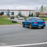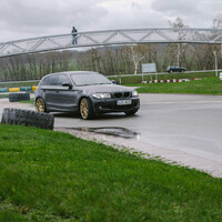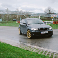 Akorát se začínalo jezdit a ve frontě na dráhu už stála slušná řádka aut. Po úvodní půlhodince se dokonce začala tvořit fronta, takže jsme přešli na ježdění desetiminutovek. Počasí se začalo zlepšovat a trať dokonce začala pomalu schnout. Využil jsem příležitosti a předal mávání vlajkou Adamovi, abych si trochu užil festivalu přetáčivosti, a když byla trať skoro úplně suchá, rozhodl jsem se, že je ideální příležitost vyzkoušet slicky a vystřihnout si nějaký pěkný čas. V okamžiku, kdy jsem měl přezuto, začalo pršet. Co pršet – lejt! Takže zpět na civilní gumy a užít si trochu toho ‚bezpečnostního‘ driftingu.