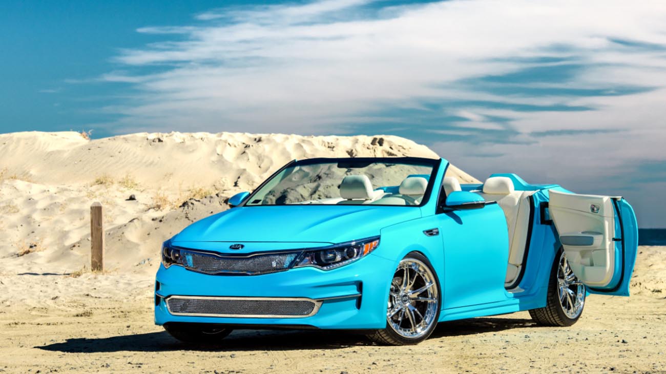 Třetí koncept mi dokonale vyrazil dech. Jedná se o vzácný způsob provedení karoserie, který se do sériové podoby dostal jen ve velmi omezených počtech. Sériová Kia Optima odhodila několik přebytečných plechových panelů a na svět přišel čtyřdveřový kabriolet. Tento zapomenutý karosářský klenot byl v začátcích automobilismu stejně rozšířený, jako je dnes například sedan, ale s postupem technologií postupně upadl v zapomnění. Pokud zalovím v paměti po čtyřdveřových kabrioletech z poválečné produkce, pak mě napadá snad jedině Lincoln Continental. Technicky vzato lze uvažovat i o Jeepu Wrangler Unlimited, avšak kabriolet s rámy oken dveří zkrátka není tak úplně kabriolet, že?