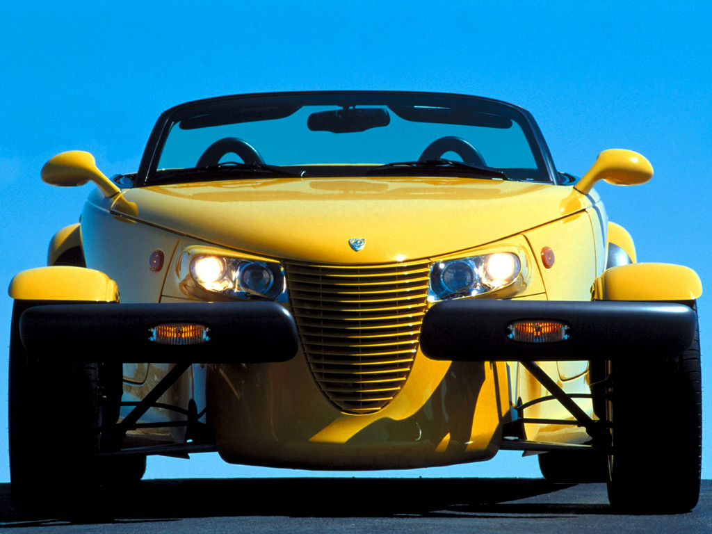 V roce 1993 se světu představil odvážný koncept z dílen Chrysleru. Prowler byl moderním pojetím hot-rodu se vší parádou dostupnou na začátku devadesátých let. Málokdo však bláznivý koncept udržel v paměti. O to větší překvapení pak vyvolaly první sériové exempláře s odkrytým zavěšením předních kol, které začaly v roce 1997 opouštět tovární linky. Retro hot-rod s moderním nádechem skutečně budil pozornost a se stahovací střechou, klínovitým profilem a sportovním výfukem vypadal jako ztělesnění amerického snu (nebo jako formulka z Trackmanie). Bohužel měl i pár nepříjemných vlastností. V duchu místní tradice jste si mohli objednat svoji oblíbenou barvu, pokud to byla fialová metalíza. Továrnu opustila necelá pětistovka kusů, a ačkoliv jejich zvukový i tvarový projev sliboval mnohé, pod kapotou se skrývalo pohonné ústrojí z Chrysleru LHS s automatickou převodovkou. Zrychlení z nuly na sto za 7,2 s značně pokulhávalo za dynamickým zevnějškem. O něco lépe si vedla faceliftovaná řada, která se vrátila na trh v roce 1999. Ta zaměstnala sice stále podobný šestiválec, avšak nově s hliníkovým blokem a především navýšeným výkonem na 257 koní. Steroidy dopomohly k zrychlení na stovku za přijatelných 5,9 sekundy a navýšily maximální rychlost na 190 km/h. Stále však zůstávalo nepoddajné zavěšení, ambiciózní cena v přepočtu na dnešní měnu 1,3 milionu korun a nepraktický kufr. Ten dokázal sotva pojmout složenou střechu a tak dealeři Chrysleru nabízeli jako příplatkový doplněk designový přívěsný vozík ladící s barvou vozu. Ačkoliv snaha napravovat chyby je chvályhodná, skutečně nikoho nenapadlo se zeptat, jestli za sebou chce majitel sportovního roadsteru tahat chalupářský outěžek? Extravagantní Powler zapěl svoji labutí píseň jako koncept Howler s osmiválcem a manuálem a nakonec se propadl do hlubin zapomnění. Pomohl však nastartovat sentimentální retro vlnu, které vděčíme jednak za obludnosti jako Chevrolety SSR a HHR, ale i za novodobá Camara, Mustangy a Challengery.