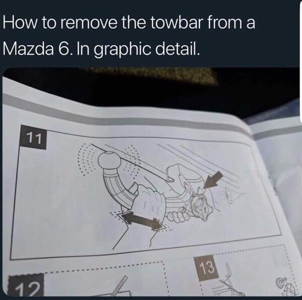 Manuály jsou přesyceny naprosto absurdními sděleními a zbytečnými slovy. Na obrázku A na straně 43 je znázorněn volant. Ano, já vím, že je to volant. Mám řidičské oprávnění, absolvoval jsem výcvik v autoškole, já sakra vím, jak vypadá volant! Obrázek B - pedálová skupina. Hej, já to vidím, pedály, má je řidič, nemá je spolujezdec, chápu, jdeme dál!