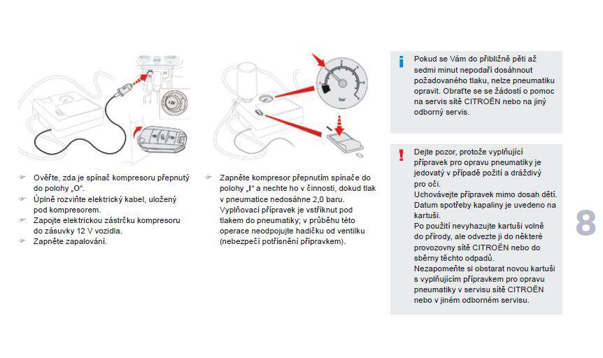 Ještě lepší je návod pro případ, že je vůz namísto rezervy vybaven opravnou sadou. Začíná slovy ‘Uchovávejte mimo dosah dětí’ a dále pokračuje dlouhým odstavcem o tom, že když si lepidlo nastříkám do očí, vdechnu ho a zbytek polknu, může to mít negativní dopad na mé zdraví. Není divu, že manuály nikdo nečte.