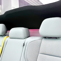 Fyzicky je to vyřešeno tak, že stropnice se už od B-sloupků spolu se střechou svažuje a pak prostě za zadními opěrkami hlav naváže přímo na spodní čalounění, vyvedené ve stejné barvě jako sedačky. Aby toho nebylo málo, je tu ještě ambientní osvětlení na přechodu mezi dvěma druhy látky, připomínající vám, že to sklo nemáte.