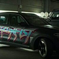 Dvoumetrový chlap, který má místo jedné ruky meč, jezdí ve středně velkém, šedém SUV na elektřinu. Kdyby bylo alespoň černé (já vím, trochu stereotyp, ale sedělo by to líp). Na místo toho je na boku obohacené o "drsňácké" grafity.