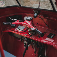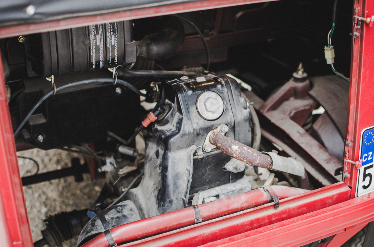 Tím je umístění jednoválcového motoru o objemu zhruba 175 cm 3 vzadu, v maličkém prostoru, kde se ale jednoválec přesto musí cítit maličký a sám. Pohání tam tuhou zadní nápravu prostřednictvím čtyřstupňové převodovky, kterou ovládáte otáčením levé rukojeti řidítek. Tato mírně nestandardní kombinace bude patrně povědomá motocyklistům, ale zapřisáhlý milovník čtveřice kol s ní bude mít trošku problém. A možná se bude raději bát zeptat, jestli má na tu věc řidičák (odpovědí je ano, tuk tuk je na “béčko”).