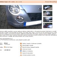 Na bazoši je objevil dost možná jediný kousek, který v našich končinách najdete. Pokud vám doteď název Copen nic neříkal, je na čase se vzdělat. Je to japonský (jak jinak) kei car vyráběný automobilkou Daihatsu a jeho první generace se vyráběla celých 10 let. To je samo o sobě docela zajímavé, málokteré auto se bez větších změn vyrábí tak dlouho (kromě Lotusů). Copen sice narozdíl od Cappuccina a S660 nemá poháněnou zadní nápravu, ale ruku na srdce, fakt na tom tolik záleží? Za to vám nabídne elektricky sklápěnou střechu, vyhřívaná sedadla a dokonce i klimatizaci. Tato exportní verze už ani není tak docela kei car, protože oturbená šestistovka byla kvůli emisím byla nahrazena atmosférickou třináctistovkou, která má příjemných 86 koní a je spřažena s pětistupňovým manuálem. To ale nijak neubírá na malých rozměrech a potenciální hravosti malého kabrioletu. A jeho výraz tváře masky přimo vyzývá k tomu, abyste si sedli a vyrazili na cestu, kde budete šlapat na plyn jako psychopat, v tváři budete mít stejný výraz jako Daihatsu a přitom nepřekročíte rychlostní limit. Takže pokud chcete kabriolet, který se tváří jako psychopat na vás směje, a přitom ho parkovat v obýváku panelového domu, pak nakupujte zde!