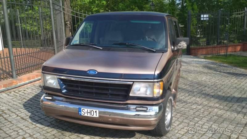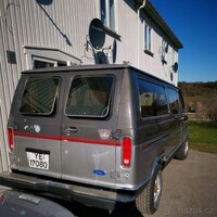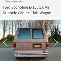 Dalším v pořadí tu máme trochu novější Club Wagon importovaný z Nizozemska. Pětilitrový osmiválec, plyn, béžový exteriér i interiér. Co více od dodávky potřebujete? Možná ještě další řadu sedaček, kterou na fotkách postrádám.