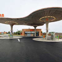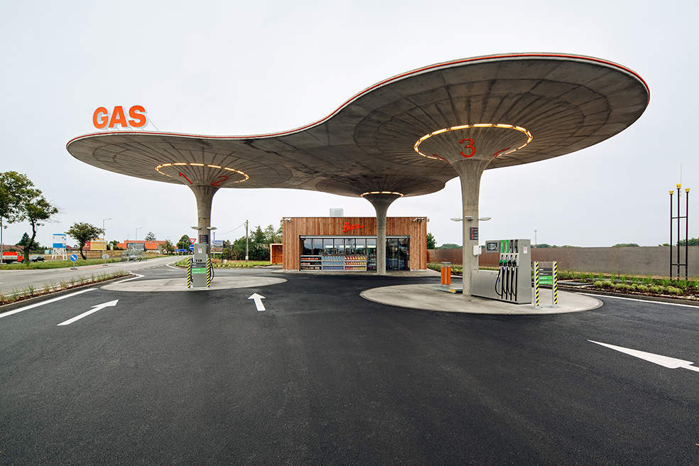 Když se řekne čerpací stanice, většina z nás si představí jednoduchou stavbu sestávající se z přístřešku, pod kterým se nachází několik tankovacích stojanů, a nízké hranaté budovy s obchůdkem a záchody. Utilitárnímu designu sekunduje pestré zbarvení, které se liší podle provozovatele čerpací stanice. Zkrátka nic moc zajímavého, ani architektonicky hodnotného. Tedy alespoň v drtivé většině případů.