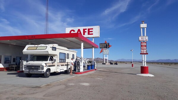 29. 4. 2019, 17:27Tahle benzinka mi utkvěla v paměti -- na výletě v USA jsme zastavili na Route 66 u Roy's Cafe. V poušti bylo koncem listopadu cca 30°C a vzduch se ani nehnul, to jen přispívalo k atmosféře místa, kde se zastavil čas. Je to ale místo se zajímavou historií, v době největší slávy tu fungovala 24 hodin denně benzinka, servis a motel pro cestující po Route66, po otevření interstate 40 se vše změnilo... https://en.wikipedia.org/wiki/Roy%27s_Motel_and_Caf%C3%A9