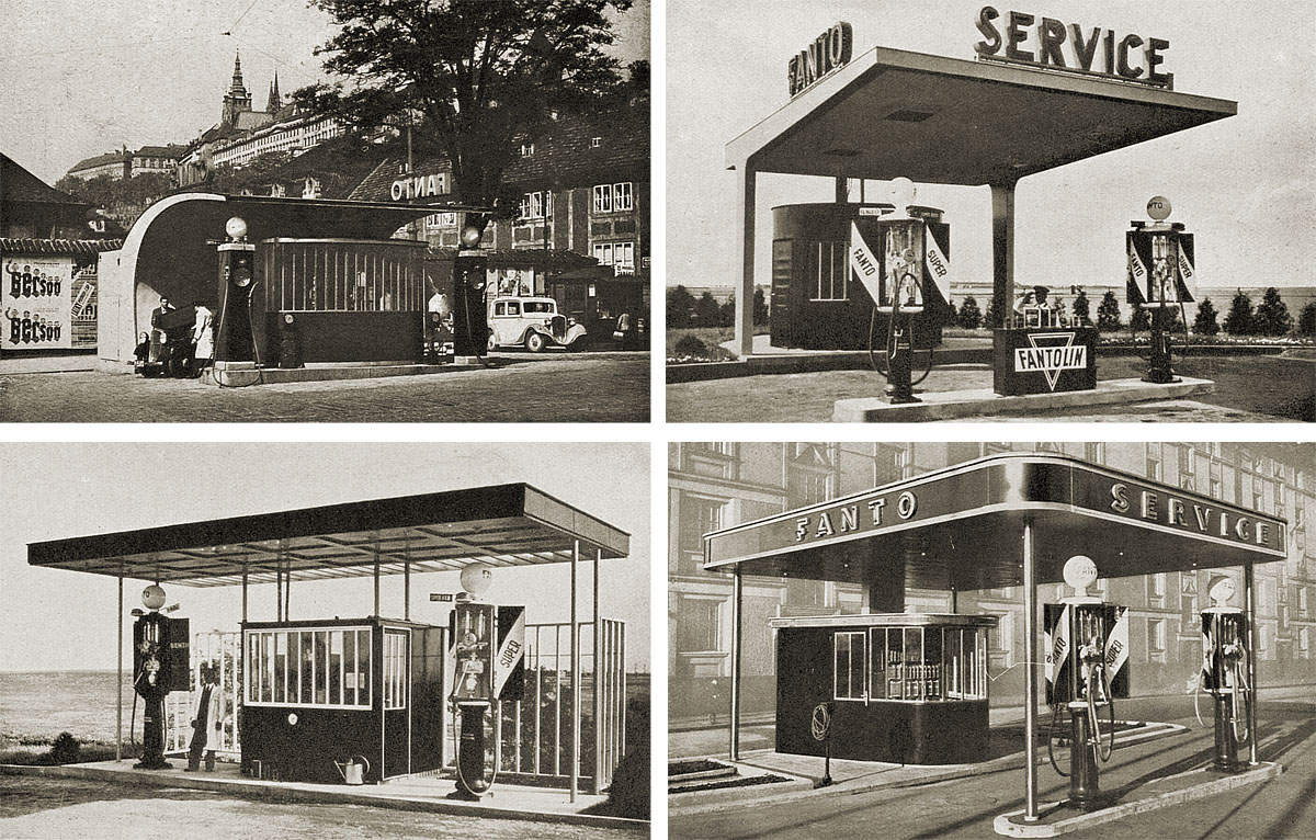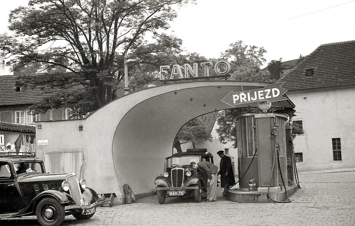 Tak to ale není odjakživa. V úplných počátcích motorismu se benzín prodával v lékárnách, časem se začaly první ruční čerpadla na palivo objevovat na chodnících před koloniály. S rozšiřující se poptávkou se ale staví i první čerpací stanice. A protože všechno kolem aut mělo v té době punc určité výjimečnosti, dostalo se i prvním benzínkám důsledné péče. V drobných stavbách, které pro palivářské společnosti navrhovali u nás takoví velikáni architektury, jako Josef Gočár, nebo Ladislav Machoň, se sice nenacházely toalety, ani prodejny občerstvení – v té době se zkrátka na kávu chodilo do kavárny, často šlo ale o perly funkcionalistické architektury.