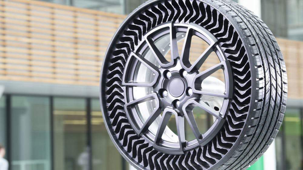Největší výrobce pneumatik spolu s motoristickým gigantem GM ale tvrdí, že éra “nafukovacích" pneumatik se pomalu chýlí ke konci. Nahradit by je prý měly speciální kola nazvaná UPTIS (Unique Puncture-proof Tire System). Podivně vypadající průhledná kola s vrstvenou konstrukcí pravděpodobně nevidíte poprvé. Videa, kde se tyto náhrady pneumatik testují na různých džípech a čtyřkolkách se na internetu objevují v pravidelných intervalech, zatím se ale neobjevil nikdo, kdo by je dodával sériově na normálních autech.