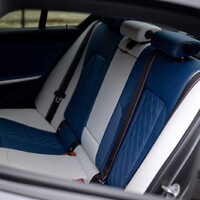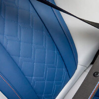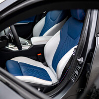 Venku temno, vevnitř párty! Druhou specialitou první edice M340i je interiér, který je modro-bílý a dle příručky zde najdeme kůži Merino. Sedačky s kombinací modré, bílé a modrého a žlutého prošívání mě fakt bavily. Nějakou dobu jsem se vážně nemohl rozhodnout, jestli už je to kýč, nebo je to naopak geniální kombinace. Pak ale vyhrálo to druhé. Jen se na to podívejte! A k tomu ty pásy!