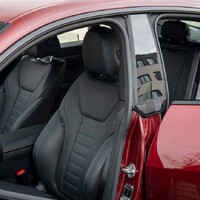Testovací čtyřka byla vybavena nejenom vizuálními M-prvky, modrými brzdiči a znáčky M na blatnících, ale také sportovním podvozkem a variabilním řízením (také sportovním). Oproti tomu ale byla obuta do vcelku nesportovních 18“ kol se zimními pneumatikami 245/45. Tato kombinace je ale oproti očekávání naprosto boží. Podvozek je sám tužší, ale komfortní. V tom mu zdatně pomáhá i o něco vyšší profil pneumatiky. Díky vyvážené hmotnosti vpředu i vzadu vás velice potěší na okresce, kde si můžete krásně pohrávat s přenosem váhy a pohazovat si s autem dle své vlastní libosti. Za snížených adhezních podmínek můžete pomýšlet i na mírné pohození zádí, ale na můj vkus čtyřce v této motorizaci sedí spíše čistá stopa a na drift je potřeba použít důraznějšího přemlouvání.