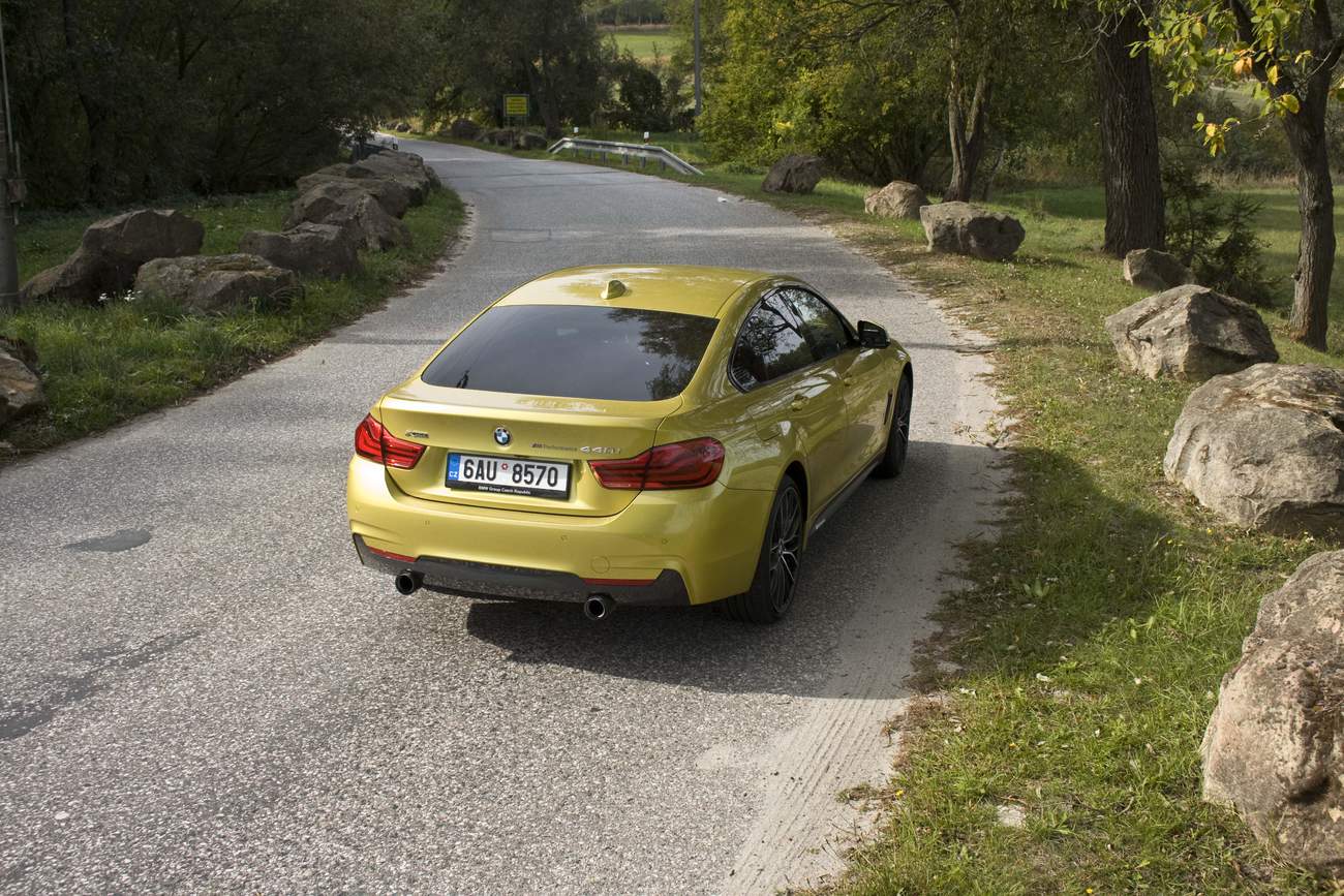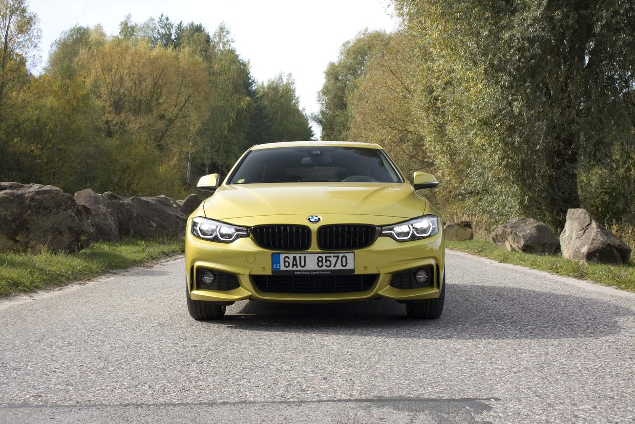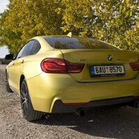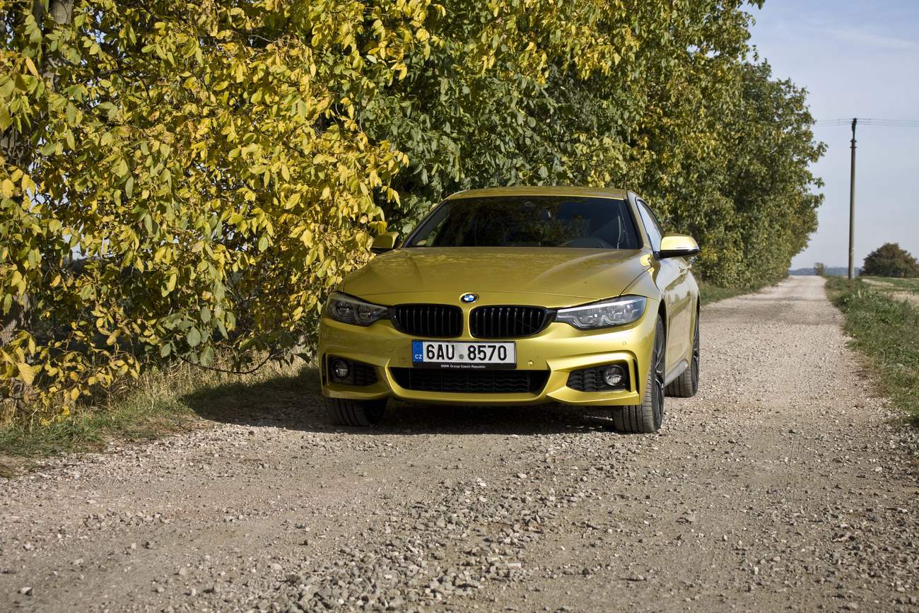 BMW ze čtyřkové řady nám v poslední době prošlo redakcí několik. Vojta před rokem sbíral pokuty v benzinovém kupé, Matěj vytáhl na zasněžené okresky naftovou verzi a nechybělo ani těžkotonážní cabrio. Chvíli mi proto trvalo, než jsem zářivě zlatý exemplář dokázala zařadit. Gran Coupé znamená něco jako kupé s dveřmi navíc. Má tedy čtvery dveře, jedno víko kufru (nebo spíš páté dveře), benzinový třílitrový motor s turbem a spoustu doplňků z dílny M Performance. A nepřehlédnutelný lak odstínu Austin Yellow.
