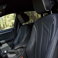 Nevadí, když se teď maličko rozbásním o tom, jak je krásné? Sebevědomá příď, elegantní křivka zkosené střechy, půvabná boční linka protínající všechny spoje na karoserii… Člověk by skoro zapomněl, že ta věc má taky jezdit. Emkové doplňky jako černá maska, prahy a karbonový plášť výfuku jsou přesně tím, co lak ještě potřebuje k dokonalosti. Ze všeho, co je odvozeno z klasické trojky generace F30, je tohle asi nejpovedenější. A co musí potěšit každého správného Čecha, je to i praktické. Jen nesmíte v zimě zapomenout namazat hrany oken silikonem. Několik odznáčků kolem dokola prozrazuje, že jste si trochu připlatili, celek ale nepůsobí pubertálně dokonce ani v téhle barvě kočičího zlata.