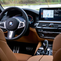 Takže tu máme dvě tuny, necelých 300 koní a 420 Nm kroutícího momentu. Stovka za 5,9 sekundy zní jako adekvátní údaj a dynamika v provozu je příjemná. Synergie mezi spalovacím a elektrickým motorem je příkladná, spotřeba paliva i v případě provozu jen na benzín u mě nepřekročila sedm litrů na sto. Asi jsem málo divočil, ale proč taky… Není to stroj na zábavu jako M340i. Pětka je naladěná spíše cestovně a komfortu přidávají i o něco menší kola, než bych čekal. Osmnáctipalcové ráfky černé barvy na šedivém autě moc nevyniknou, ale jsem za ně rád. A když se dostanu na zábavnou okresku, tak mě pobaví. Vyšší bočnice nejenom přidává na komfortu, ale v zatáčkách a rytmu mírně nelegální rychlosti je více cítit, jak má sklony se více hrnout, trochu sklony k nedotáčivosti, které jsou tvrdě potlačeny aktivním řízením zadní nápravy a pohonem všech čtyř kol. Skoro mě až překvapuje, jak to celé působí hravě. Překvapivá je i decelerace. Při plných brzdách z vyšších rychlostí je cítit, že dvě tuny dělají své a záď působí trochu nejistě, ale příplatkové ‚M‘ brzdy si společně s rekuperací poradí.