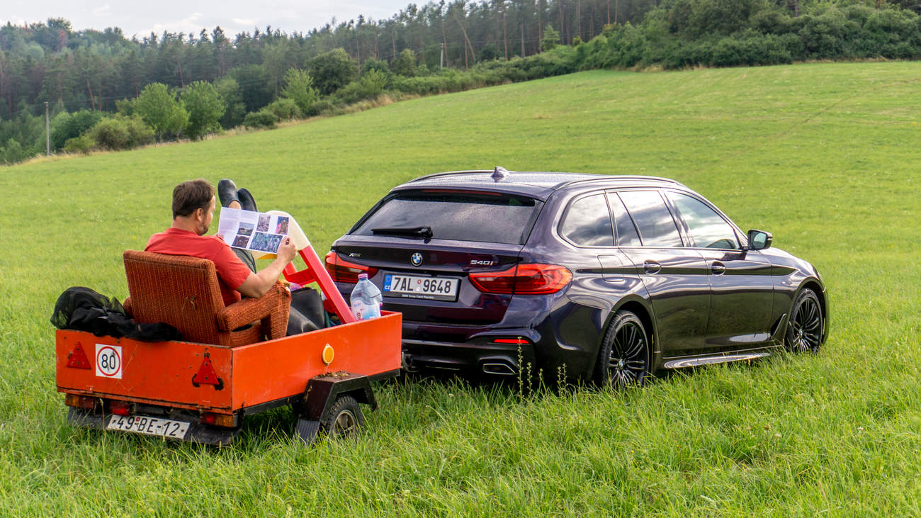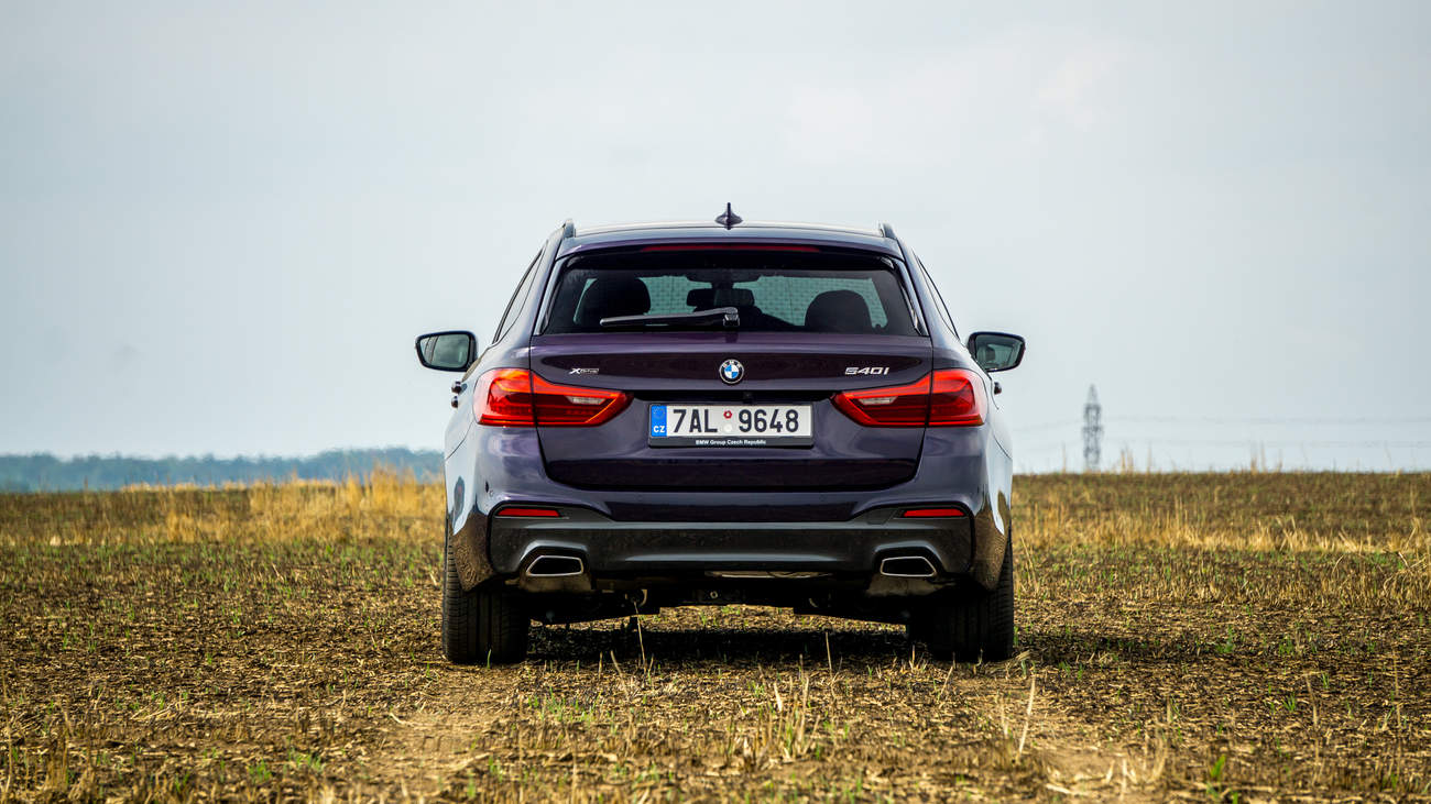 BMW 540i xDrive Kombík Fialový s Dřívím a Polštářkama je jednoduše velmi dobře postavené auto na všechno. Zastoupí i nějaká ta rádoby SUV při provozu na poli, předjede všechno, udrží se i s pitomcem za volantem v zatáčkách a to celé naservíruje jen tak mimochodem na stříbrném podnose v prostoru vybaveném… Dřívím a polštářkama.