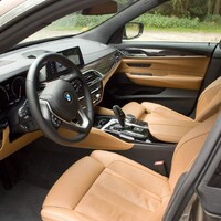 Architekturou kabiny šestka v ničem nepřekvapí. Přístrojová deska je tmavá, ostře řezaná až strohá, ale právě kontrast mezi technicistními linkami a měkkou kůží (zde v barvě koňaku) je trademarkem všech současných velkých BMW. Nejvýraznějším rozdílem oproti pětce je vzdušnost. Prostor kolem předních sedadel je velkorysý jako ve velkém SUV, v tomto ohledu GT těží z vyšší karoserie. Svažující se střecha vzadu sice ubírá místo nad hlavou, pořád je ho ale dost, aby se tu pohodlně rozvalili dva dospělí. Útulnosti druhé řadě dále dodávají zatmavená skla, která mimochodem velmi dobře stíní před pichlavým sluncem. Testovací subjekt v podobě mého muže (a to není žádný drobeček) se vyjádřil, že se mu tam sedí dokonce příjemněji než vepředu.