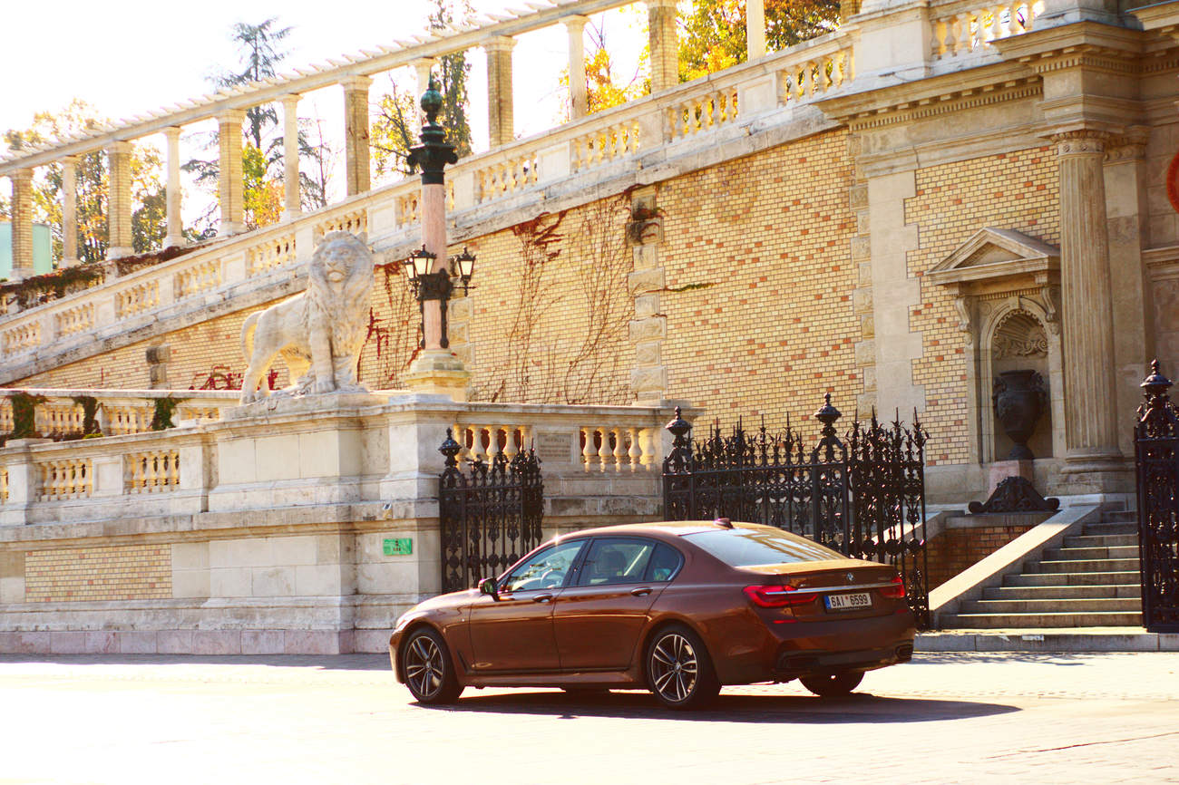 Abych zmírnil všeobjímající pocit nepatřičnosti, zůstávám raději celou cestu na náš třídenní výlet do Budy a Pešti, jakož i po cestě domů, na sedadle řidiče. Odsud působí 750 Ld o něco méně impozantně. Vlastně si připadám docela jako… v autě. Bez asi tak akru bílého koberečku pod nohama, bez přední sedačky, která se dá stiskem tlačítka odsunout a za rozmačkání nebožáka vpravo vpředu změnit v pohodlnou podnožku, laskající nohy bohatce, bez tabletu pro ovládání sedaček, okenních clon, barev podsvícení, televizí i dalších nezbytností, bez toho všeho je i sedmičkové BMW v té nejdelší, nejdražší a (z dieselů) i nejsilnější verzi zkrátka auto.