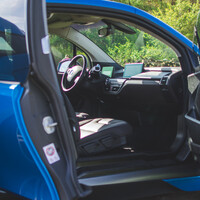 Vůbec celé to auto jezdí velmi příjemně. Je tiché, je to elektromobil, brzdí to rekuperací, takže se dá jezdit jen pomocí jednoho pedálu skoro pořád. Musíte si však dávat bacha, protože brzdí jen zadní kolečka, takže když se najede na něco kluzkého, ESP automobil popustí dopředu stejně jako by ubralo razanci při akceleraci. Ale na to se dá zvyknout. Výsledný zážitek je zábavný, ale přesto nadmíru relaxační. Projev motoru je velmi, velmi sametový, ticho při akceleraci je návykové a vzdušná a netradiční kabina je opravdu příjemným místem k bytí. Recyklované materiály na dveřích sice mohou působit podivně, ale jinak se člověk cítí pohodově, všechny ovládací prvky fungují příjemně a nízká palubní deska ze které trčí jen dva displaye je praktickým místem pro odložení nějakého toho provozního chaosu jako jsou mobily, peněženky a jiné nezbytnosti. Absence středového tunelu a téměř dokonale plochá podlaha pak jen podrthují pocit prostoru a "pokojíčkovosti" celého interiéru.