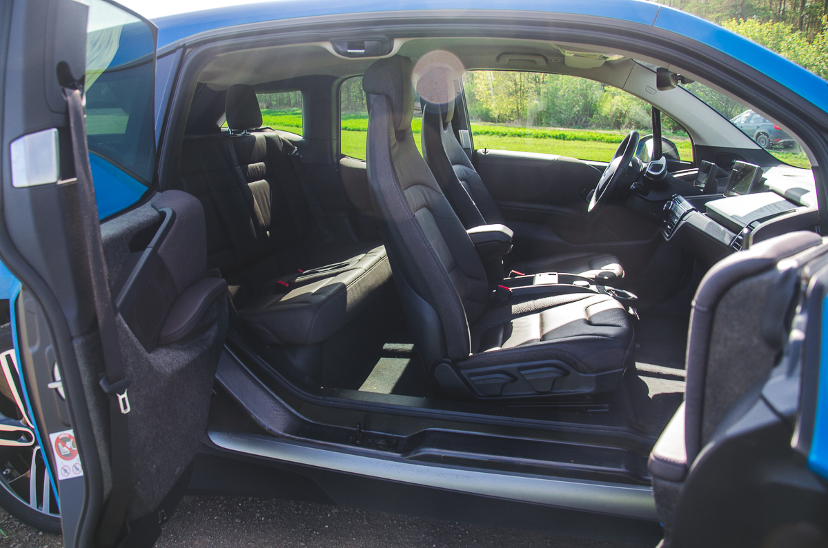 Při pohledu zvenčí pak oceníte velikost kol, která dobře koresponduje s vyšší stavbou celé věci a trošičku přehnané detaily pak potěší každého, kdo si s elektromobilem chce koupit také trošku té budoucnosti i v designu. Jediné, nad čím si lidé klepou dost často na čelo je boční linka oken. Jenže i ta dává smysl. Vepředu je jako u normálního auta, takže se ničeho neleknete, okýnka v zadních dveřích jsou nízko, aby dítě tam sedící mohlo bez problému koukat ven a nenudilo se, no a pak je linka zvedlá nahoru, aby se nad elektromotor a prostor pro případný dobíjecí spalovací dvouválec vlezl ještě vůbec nějaký kufr. Úložný prostor je jedinou skutečnou slabinou tohoto auta, protože vepředu máte od okolí jen špatně izolovanou schránku na všemožné kabely a nabíječky a vzadu máte kufr, který pojme tak dvě až tři kabinová zavazadla a tím končí. A i u toho si zahrajete tetris. Je to jediná věc, která mi zabraňuje označit zrovna tenhle počin BMW za praktický. A to i přesto, že avantgardní zadní dveře označila naše testovací maminka slovy "proč to sakra nemaj všechna auta, to se tak dobře nasazuje ta sedačka… Kam zase utekl ten můj kluk?".